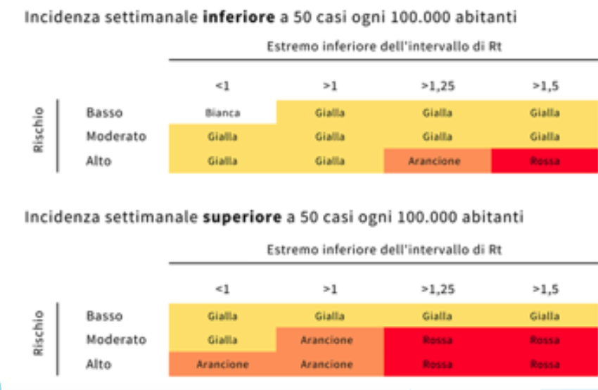 Il D.L. 02/2021, su indicazione del ministero della salute ha introdotto nuovi criteri per la definizione delle misure di contenimento delle Regioni. Agli scenari epidemici valutati nelle diverse Regioni o aree del paese secondo il Documento del Ministero della salute del 12/10/2020 (per approfondimento vedi: http://www.salute.gov.it/imgs/C_17_pagineAree_5373_16_file.pdf), che presentava margini di incertezza, si è aggiunto un criterio di valutazione che prende in considerazione l’incidenza dei contagi, indicando come soglia che mette in crisi il sistema sanitario dei n°50 casi/settimana ogni 100.000 abitanti.
